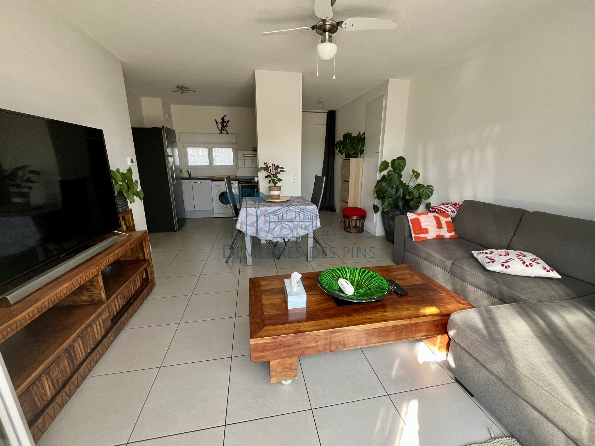 D'une surface de 61.50m2 environ avec une terrasse abritée de 12.50m2 environ, l'appartement se compose d'une entrée, d'un séjour avec cuisine américaine, 2 chambres dont une avec placard/penderie, une salle d'eau, un cellier et un wc.